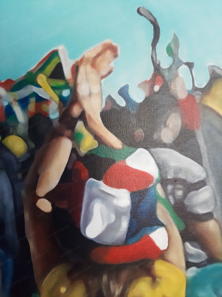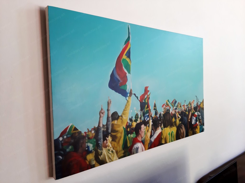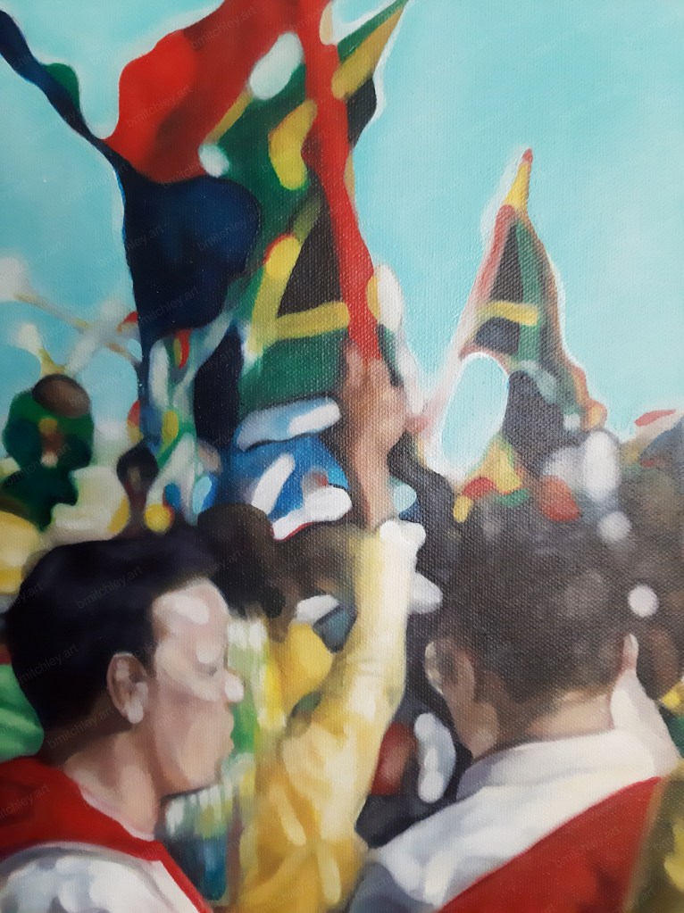 Inspired by and painted from a photograph I took at the opening of the 2010 FIFA world cup at the Centurion Fan-fest Stadium, South Africa.